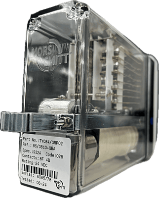 The TY084/GRP02 is an 8F 4B AC Immune DC Biased Line Relay for general railway trackside signalling applications where special characteristics such as slow release etc. are not required. Of compact modular plug-in design it has non-weld contacts and is equipped with a safety interlocking system (pin code) for insertion into mating plugboards.