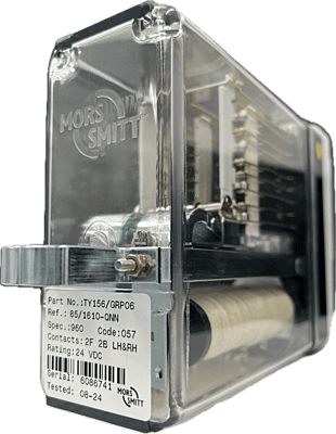 The TY156/GRP06 is a Twin 2F 2B Neutral Line Relay for general railway trackside signalling applications where special characteristics such as AC immunity, slow release etc. are not required. Twin relays consist of two relays which in effect are electrically and mechanically independent, housed in a single enclosure to the dimensions of a single relay to BR930. Of compact modular plug-in design it has non-weld contacts and is equipped with a safety interlocking system (pin code) for insertion into mating plugboards.