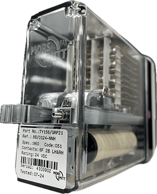 The TY156/GRP21 is a Twin 6F 2B Neutral Line Relay with high release voltage for general railway trackside signalling applications where special characteristics such as AC immunity, slow release etc. are not required. Twin relays consist of two relays which in effect are electrically and mechanically independent, housed in a single enclosure to the dimensions of a single relay to BR930. Of compact modular plug-in design it has non-weld contacts and is equipped with a safety interlocking system (pin code) for insertion into mating plugboards.