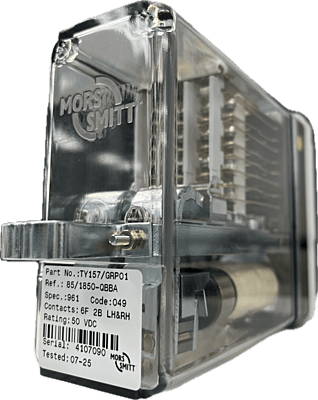 The TY157/GRP01 is a Twin 6F 2B AC not required. Twin relays consist of two relays which in effect are electrically and mechanically independent, housed in a single enclosure to the dimensions of a single relay to BR930. Of compact modular plug-in design it has non-weld contacts and is equipped with a safety interlocking system (pin code) for insertion into mating plugboards.