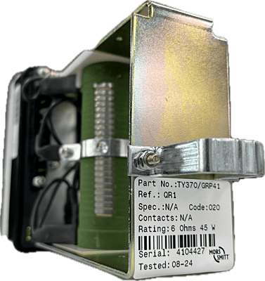 The TY370/GRP41 is a rectifier/resistor unit used to rectify the supply for a lamp proving relay. An adjustable resistor is positioned in series with the load and set so that the required proportion of current is shunted to the relay via the rectifier. The resistor value (several are available) governs the sensitivity of the arrangement. Of compact modular plug-in design it has non-weld contacts and is equipped with a safety interlocking system (pin code) for insertion into mating plugboards.